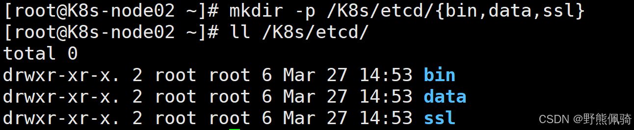 [root@K8s-node02 ~]# mkdir -p /K8s/etcd/{bin,data,ssl}