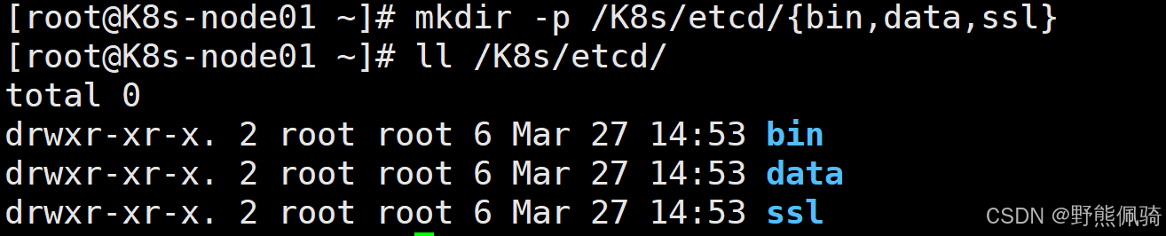 [root@K8s-node01 ~]# mkdir -p /K8s/etcd/{bin,data,ssl}