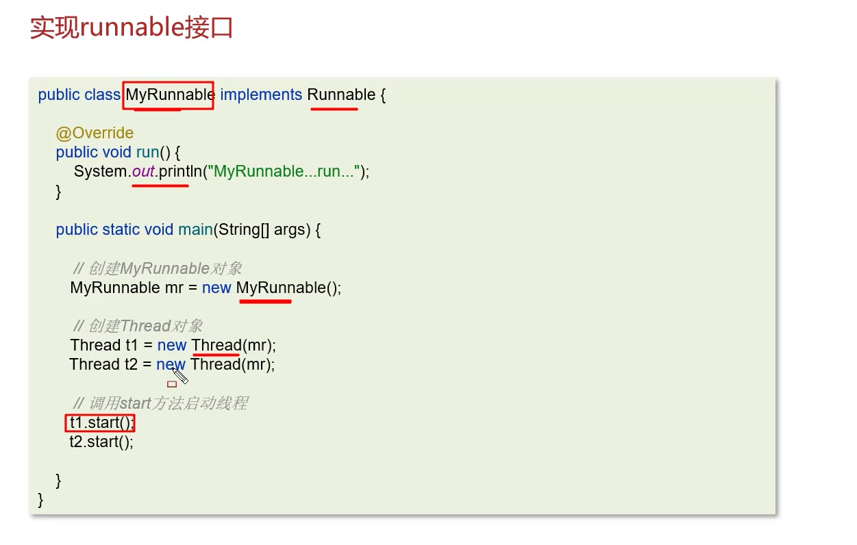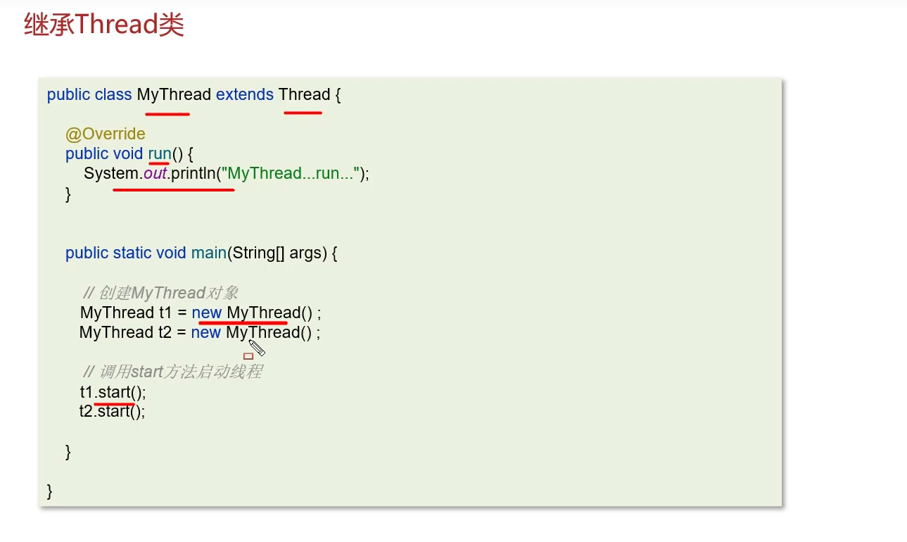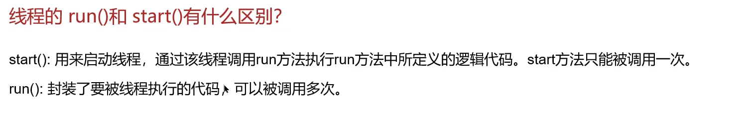 方法。 - 结果:两个线程并发运行:当前线程(调用start的线程)和另一个新线程(执行其run方法)。