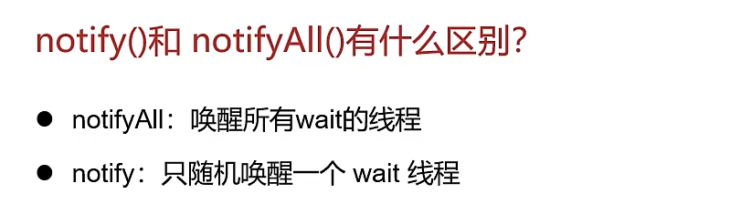 :随机唤醒一个正在等待此对象锁的线程。我们无法控制唤醒哪一个。notifyAll()