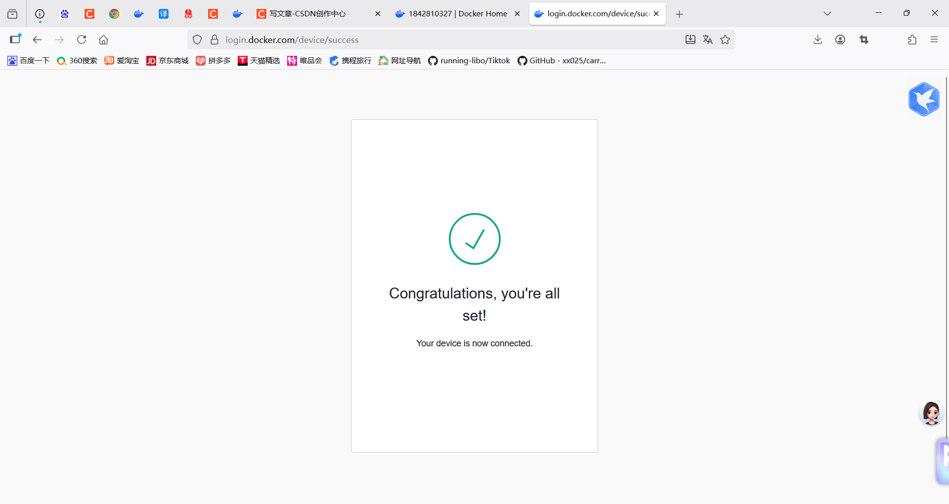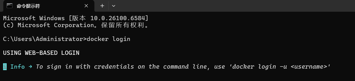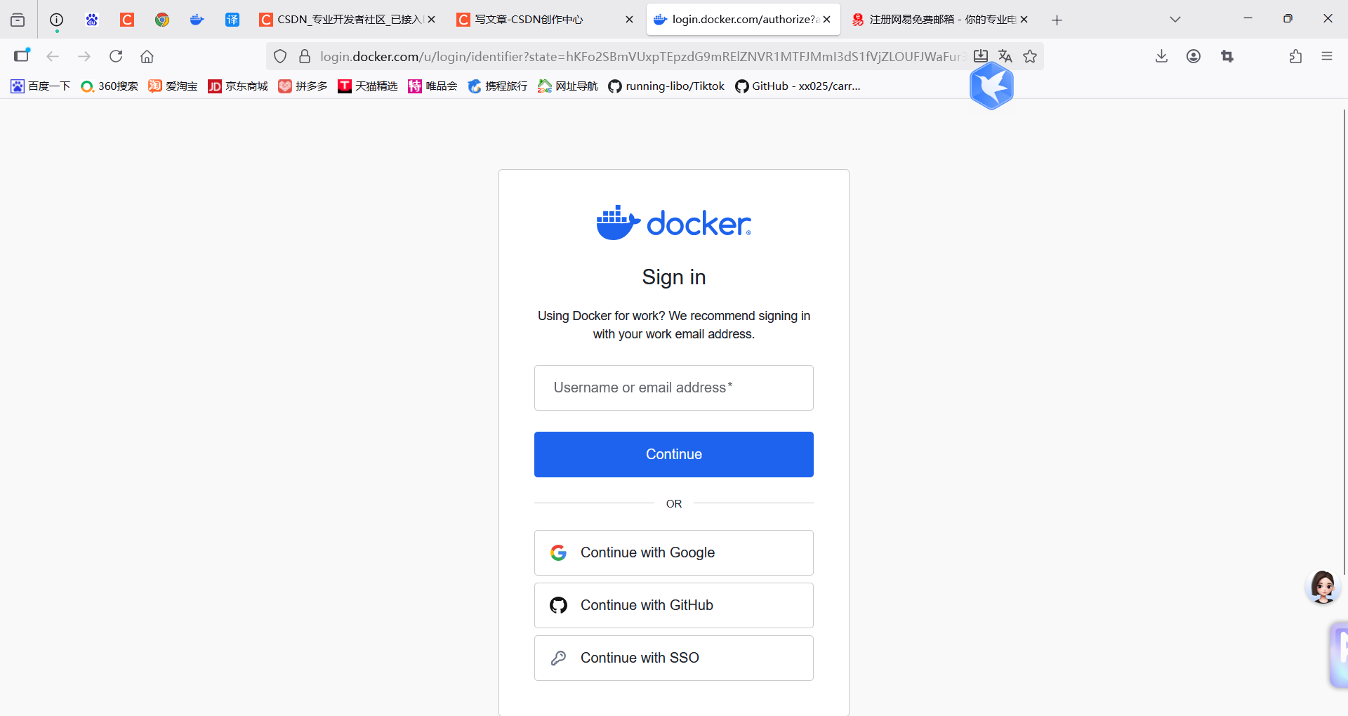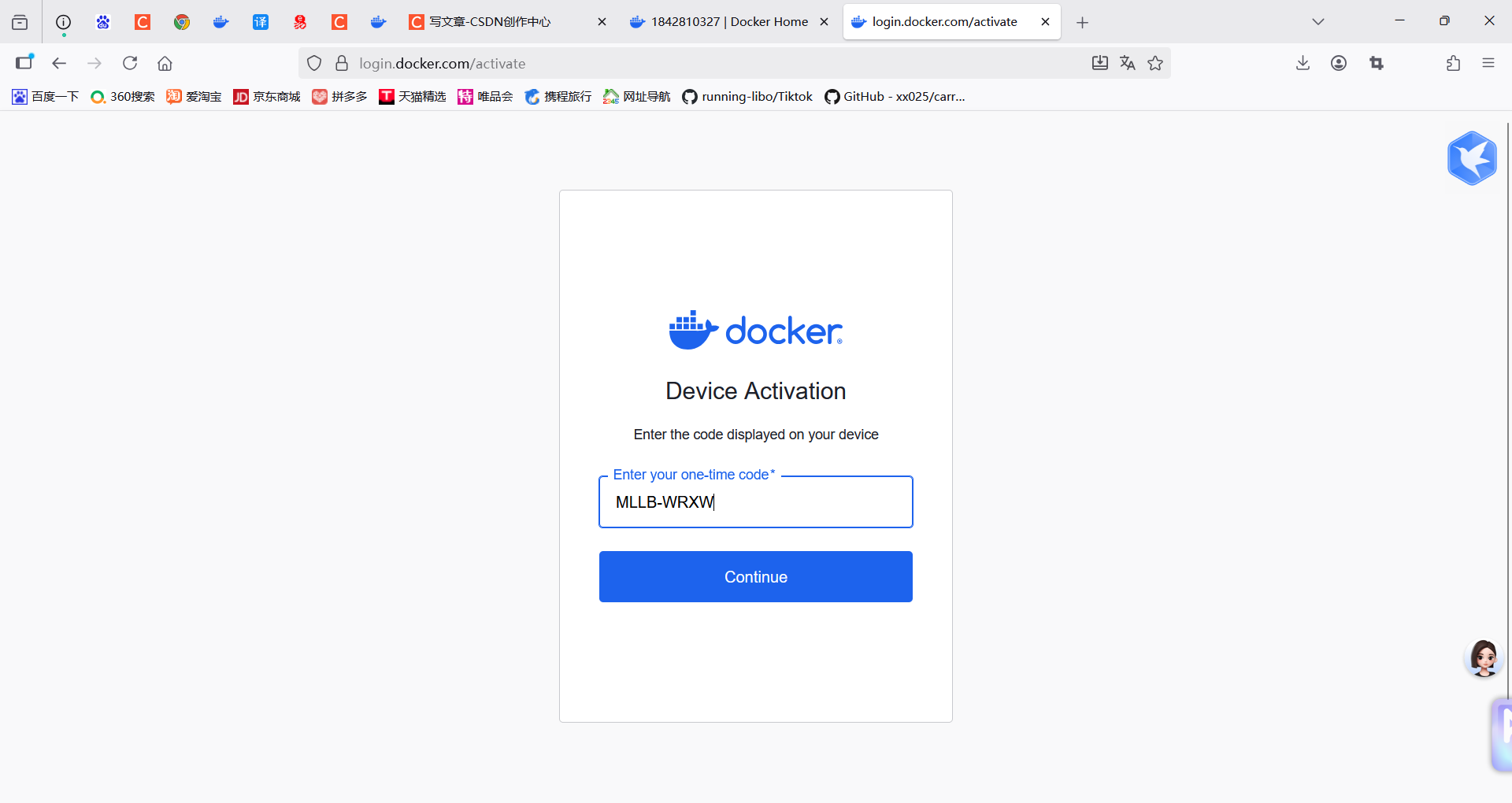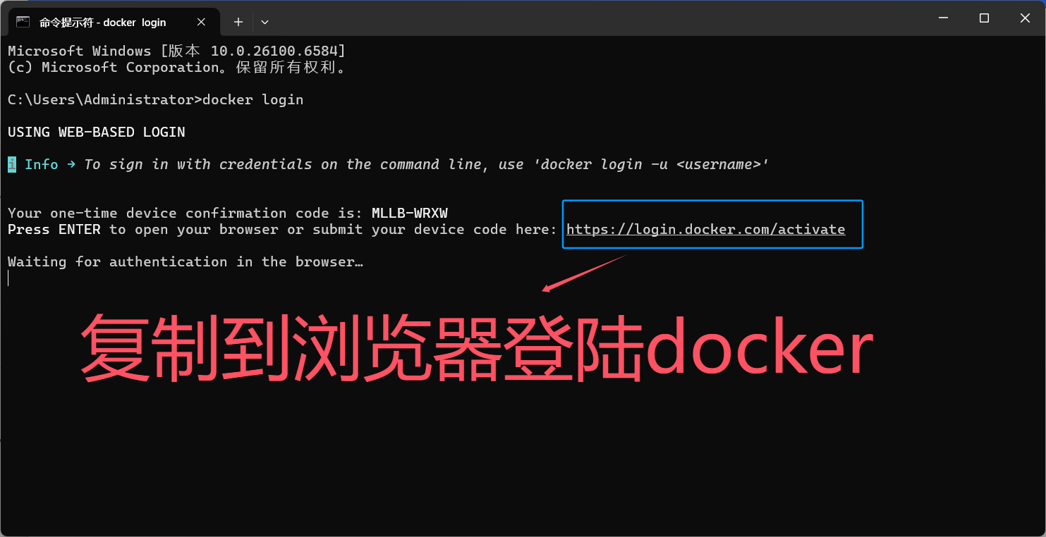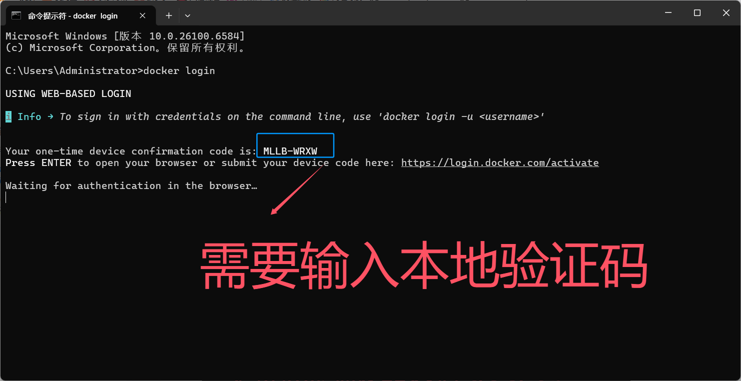 如果上面的网页打不开 就是用下面的 cmd docker login命令 中的连接打开 你需要输入一个本地码