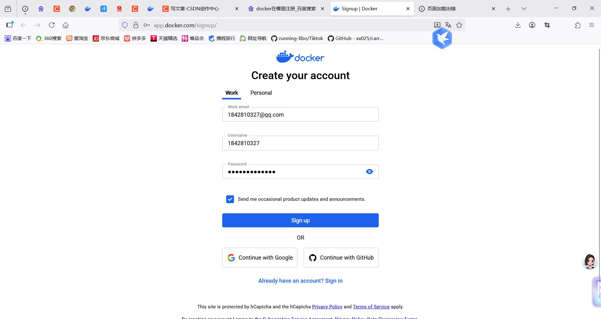https://app.docker.com/signup/ 注册和登陆超加速登陆地址