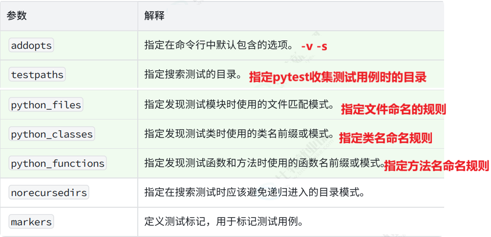 当在使用pytest执行测试用例时,在带参数时,会发现写的命名很长,这时就可以将相关配置参数统一放到pytest的配置文件中