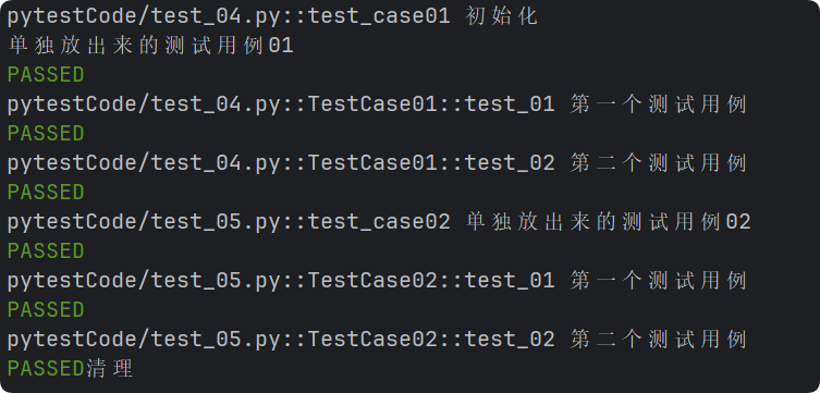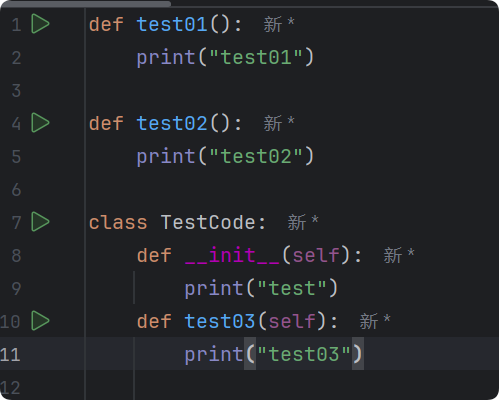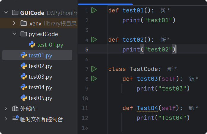 def test01():print("test01")def test02():print("test02")class TestCode:def test03(self):print("test03")def Test04(self):print("Test04")