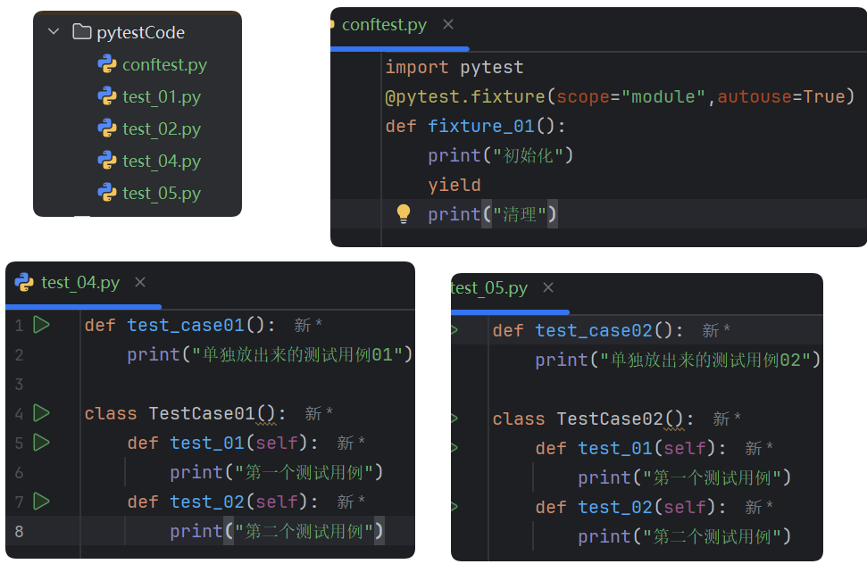 def init():print("初始化")def test_07():init()print("test_07")#使用fixture