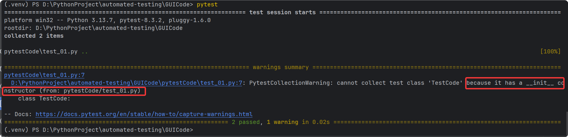 通过pytest直接执行测试用例,但这里Python类中有init构造函数,这里会出现问题