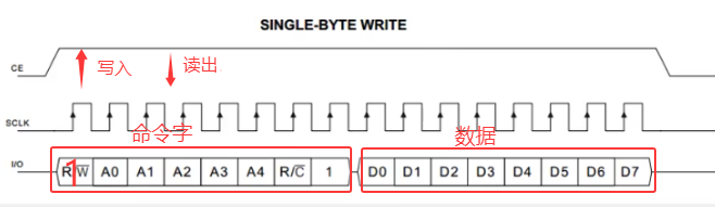 {unsigned char i = 0; DS1302_CE = 1;// 命令字for(i = 0 ; i < 8; i++){DS1302_IO = c&(0x01<<i);DS1302_SCLK = 1;DS1302_SCLK = 0;}// 数据for(i = 0 ; i < 8; i++){DS1302_IO = d&(0x01<<i);DS1302_SCLK = 1;DS1302_SCLK = 0;}DS1302_CE = 0;