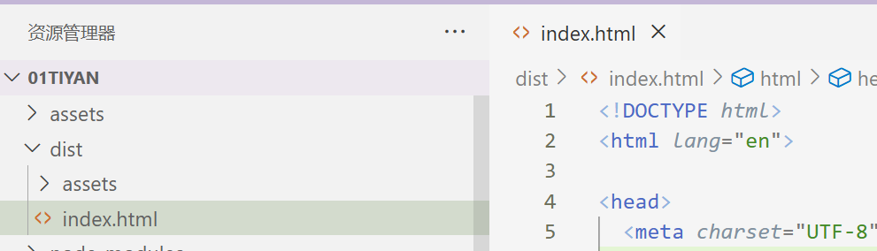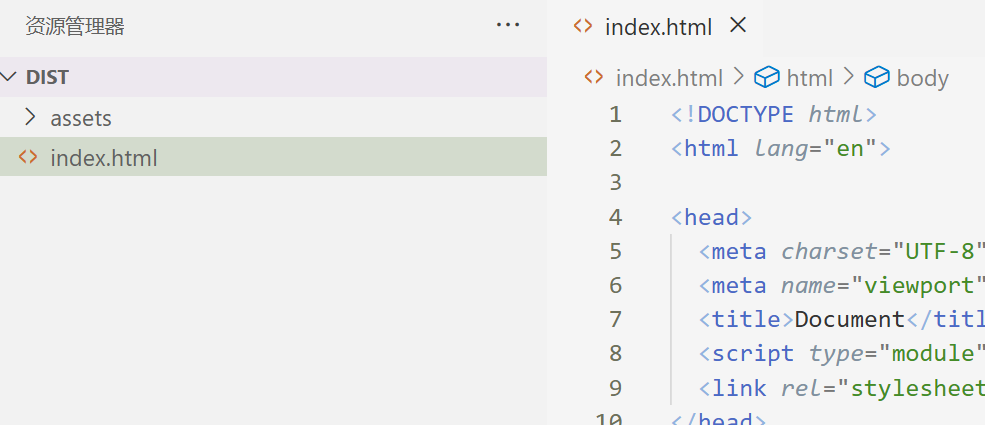 当我们执行npm run build将项目打包之后, 会生成一个dist文件, 下面我们看一下打包结果