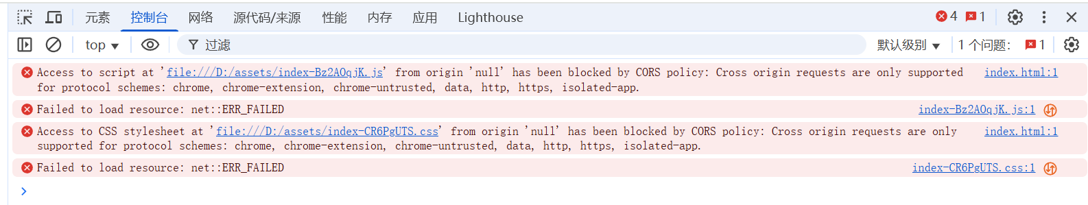 - 如果我们直接使用Live Server运行这个index.html文件, 发现提示找不到资源, 因为dist不是运行根目录