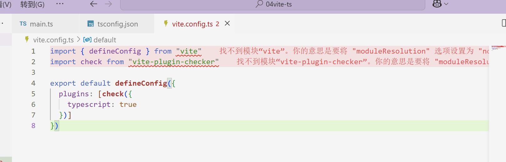 但是vite.config.ts文件报错了, 是因为vite不知道去哪找资源, 模块方案配置为node后, 默认去node_modules中寻找资源