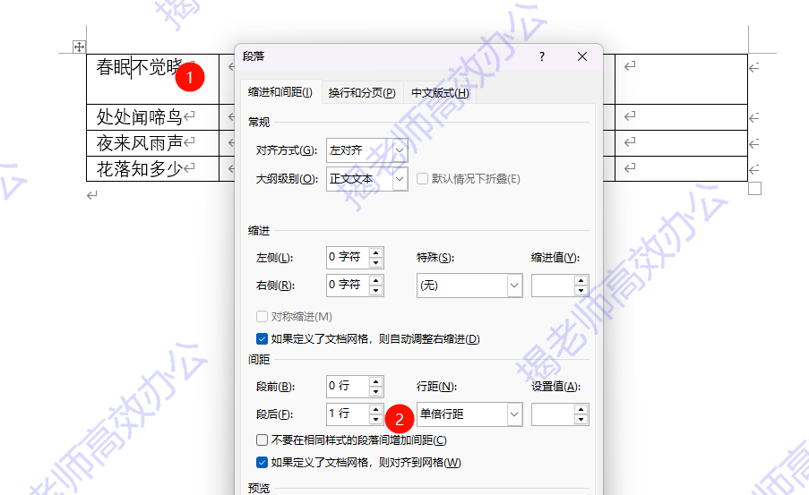 Word和WPS文字表格中为了美观,我们通常会把文字设置为垂直居中。但有时候设置了垂直居中看起来并没有垂直居中,原因通常是设置了段前或段后行距,改为0通常就好了。还是不行的话把行距改为1看看。