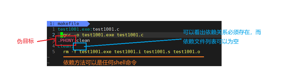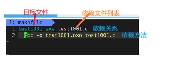 依赖关系:比如你与你爸爸的关系,test1001.exe这个目标文件的形成需要依赖test1001.c.