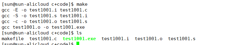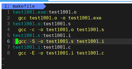 从中我们可以看出,虽然在文件中我们先写的是test1001.exe:test1001.o这个依赖关系,但是先实现的却是test.1001.i:test1001.c这个依赖关系。这就要讲到make/makefile的原理了。