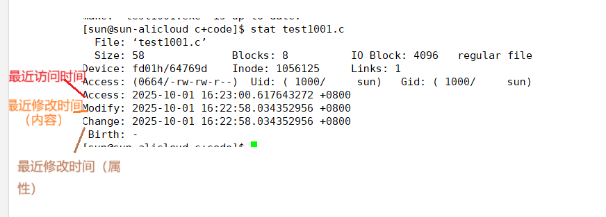 - 在我们更改文件的内容的时候,往往modify和change会发生联动变化,因为内容修改可能会影响文件属性的大小。