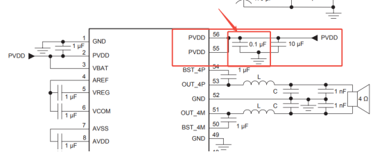 潜在因素一:Layout没有将PVDD去耦电容放置在功放芯片同侧
