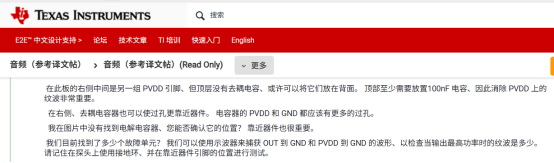 0.1uF的去耦电容可以有效滤除PVDD上的纹波,从而避免内部MOS击穿损坏。TI的EE论坛上也有类似问题的官方答复。由于空间有限,10uF的电容可以放置在背面,10nF电容必须放置在IC同面。