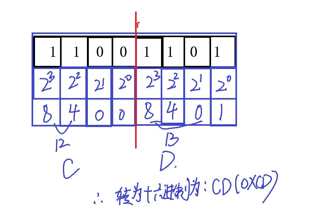 那么,2进制也就不难理解了;它就是逢2进1,它的每一位数字是由0~1组成的;eg:1101
