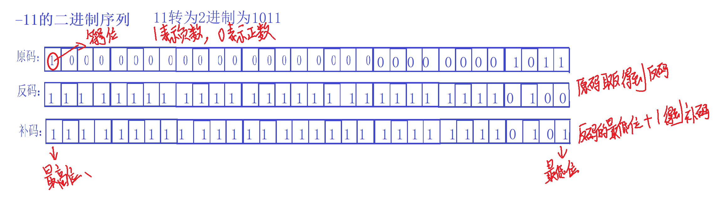 整数的2进制表⽰⽅法有三种,即原码、反码和补码