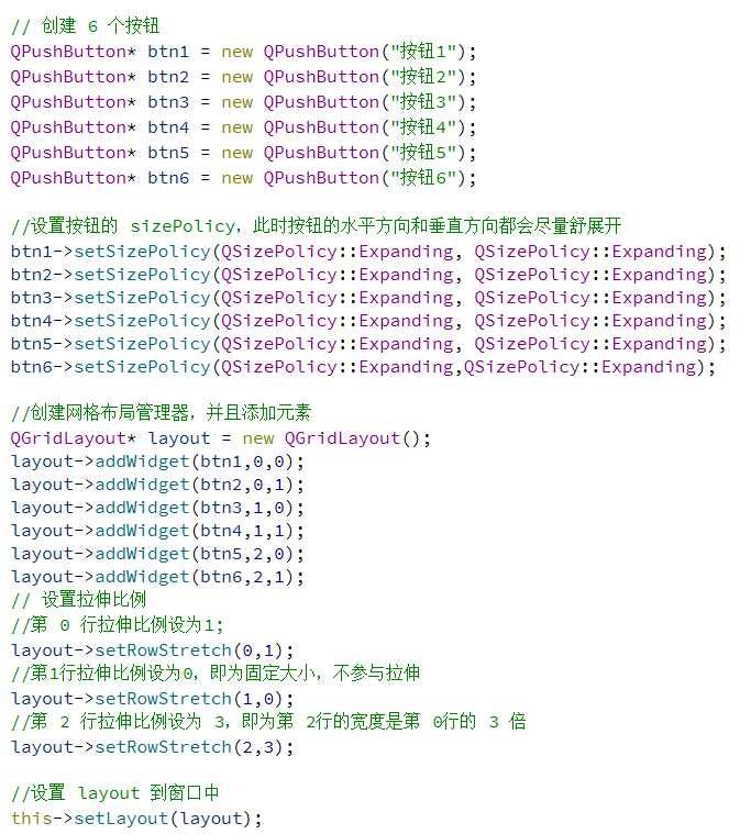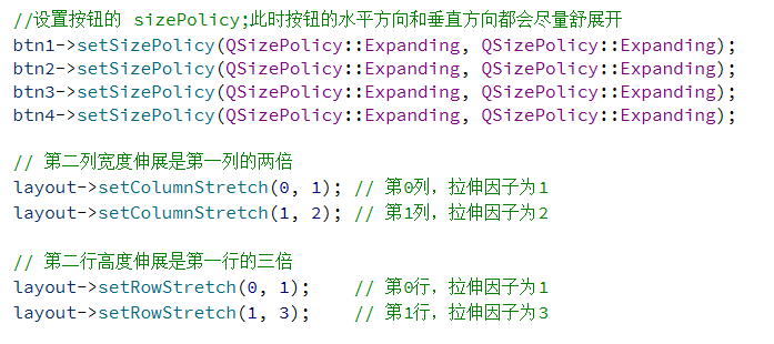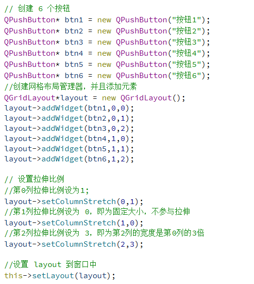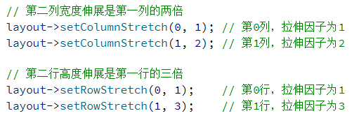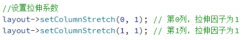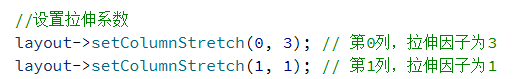 另外,QGridLayout 也提供了 setRowStretch 设置行之间的拉伸系数。