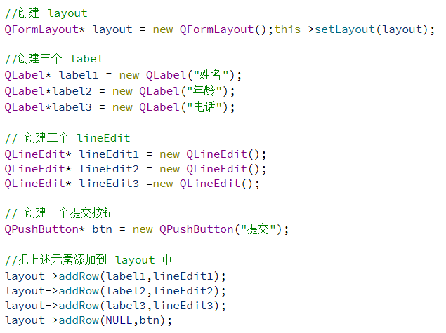 除了上述的布局管理器之外,Qt还提供了 QFormLayout,属于是 QGridLayout 的特殊情况,专门用于实现两列表单的布局.