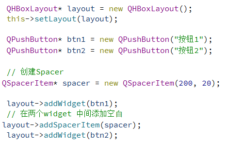 调整QSpacerItem不同的尺⼨,即可看到不同的间距.