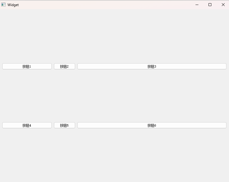 上述案例中,直接设置 setRowStretch 效果不明显,因为每个按钮的高度是固定的,需要把按钮的垂直方向的 sizePolicy 属性设置为 QSizePolicy::Expanding 尽可能填充满布局管理器,才能看到效果。