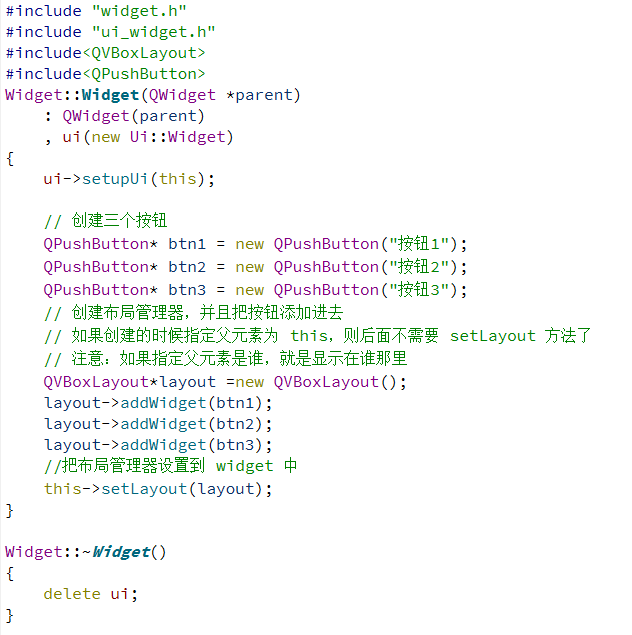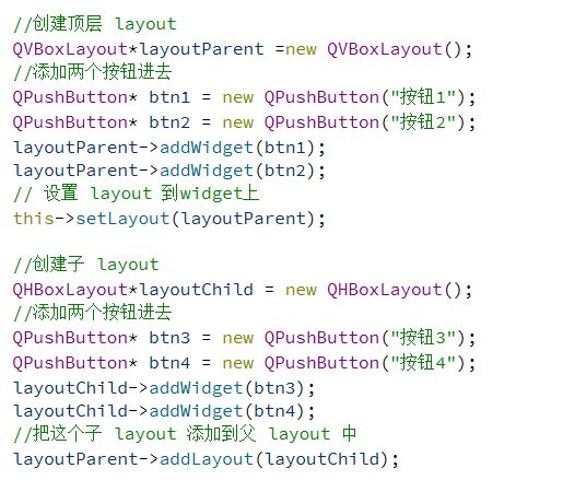等方式创建一个布局对象后,会调用 widget->setLayout(layout)