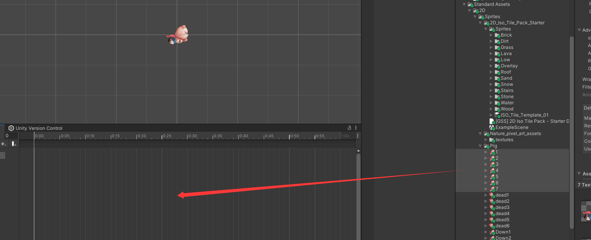 选中2D序列帧精灵图片,拖入至Animation窗口: