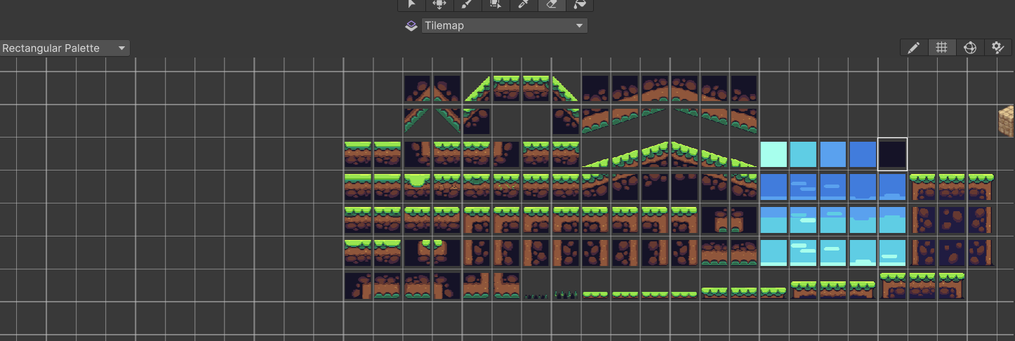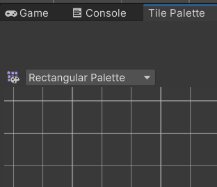 在Project窗口右键—>Create—>2D—>Tile Palette—>Rectangular即可创建一个方形瓦片调色板,创建完成后拖拽至Game窗口处方便编辑: