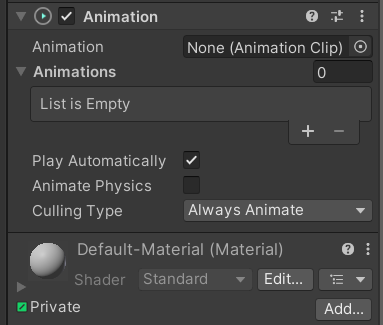 在场景中创建一个3D立方体,并为其添加Animation脚本,Unity就会认为此时你使用的是老动画系统: