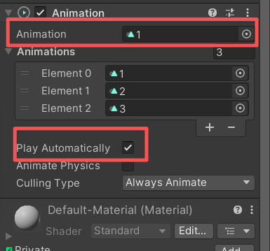 设置动画播放模式如循环播放:animation.wrapMode = WrapMode.Loop