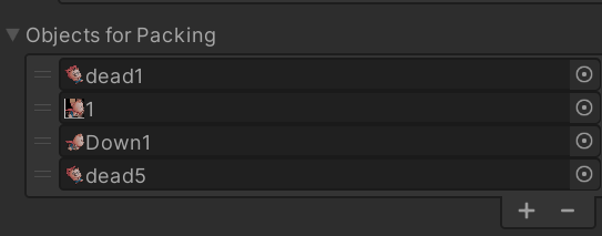 点击空图集,在Inspector窗口的Objects for Packing,即可在其中添加图片,如下例所示: