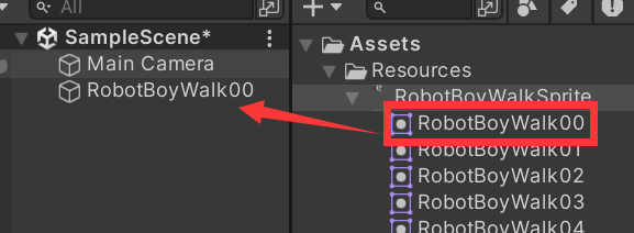{GameObject obj = new GameObject();SpriteRenderer sr = obj.AddComponent<SpriteRenderer>();sr.sprite = Resources.Load<Sprite>("dead1");//加载图集Sprite[] sprs = Resources.LoadAll<Sprite>("RobotBoyIdleSprite");sr.sprite = sprs[10];sr.flipX = true;print(sprs[10].name);