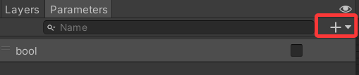 点击Parameters,可以创建参数,用于动画切换,这里创建了bool参数: