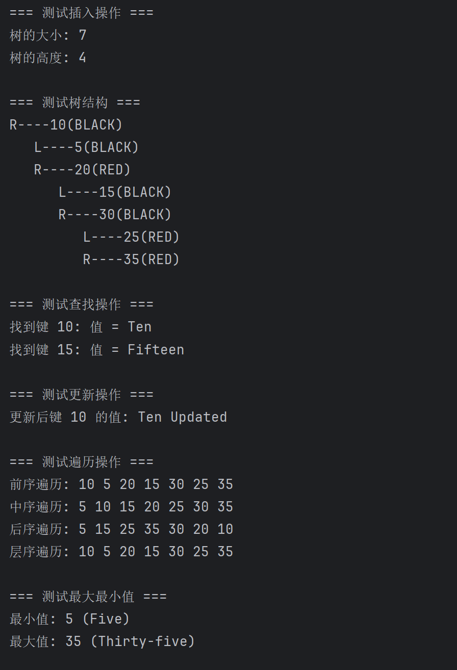 • 插入/删除:基础操作(如查找插入位置)耗时 ,修复平衡(旋转 O(1) 、变色