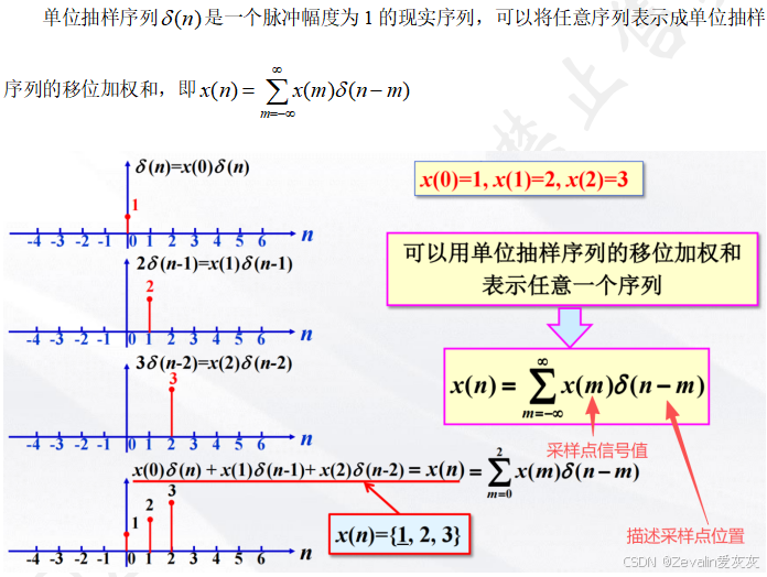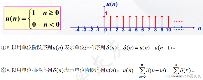 离散信号同样可以用函数表示,只是不同的是,离散函数中n只能取整数,而连续函数则是可以在其定义域内任意选取