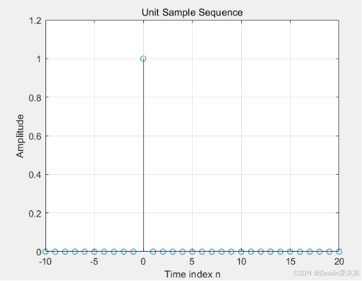 (1)例程:用MATLAB产生并画出单位抽样序列。