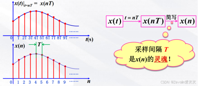 (1)一般来说,采样间隔是均匀的,可以用x(nT)表示信号在nT点上的值,n为整数。