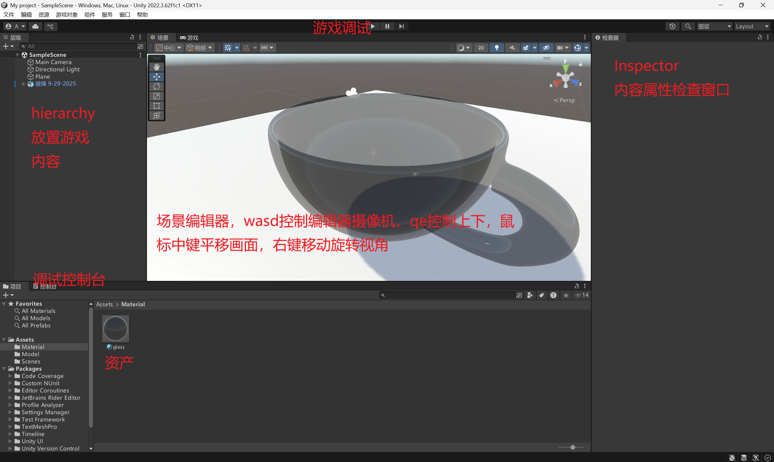 在Assets文件夹下都是你参与制作游戏的资产,包括模型,材质,贴图纹理,动画,着色器Shader,场景Sence,字体,运行脚本等等,这些东西都使用文件夹进行管理,并且做好命名工作!
