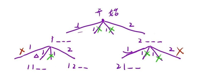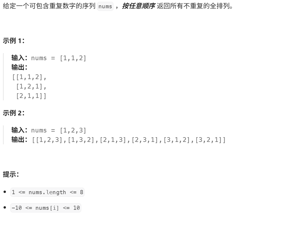 画出本题的决策树,决策树与leetcode 46 全排列-CSDN博客一致,在其基础上需要考虑重复的情况,即剪枝,所以可以采用回溯+剪枝来解决这个问题;