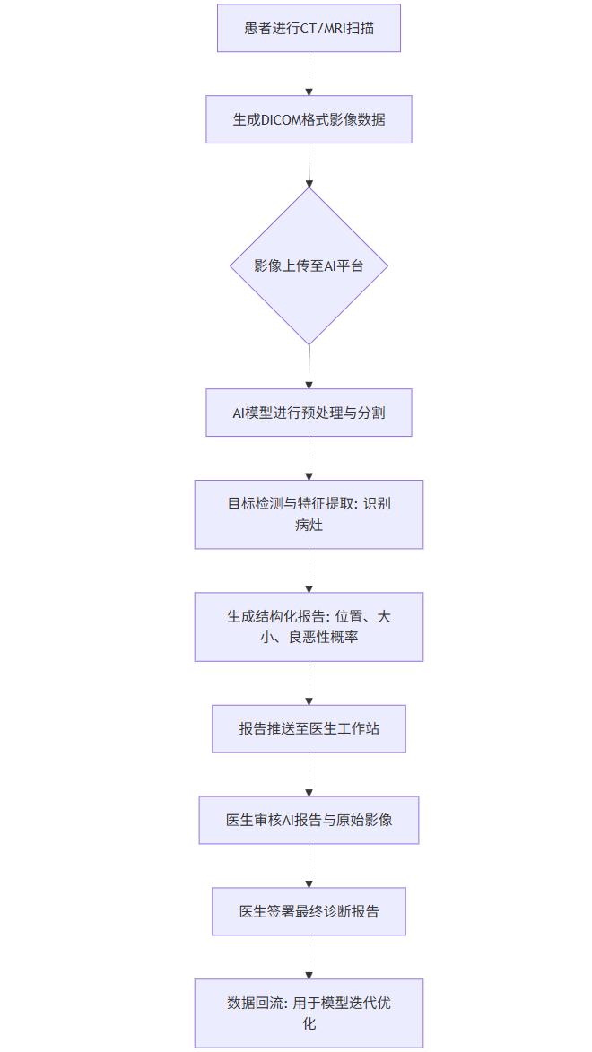 行业痛点: 放射科医生每天需要阅读大量的影像片子(如CT、MRI、X光),工作强度大,容易因视觉疲劳导致漏诊或误诊。尤其是在基层医院,经验丰富的专家资源稀缺。