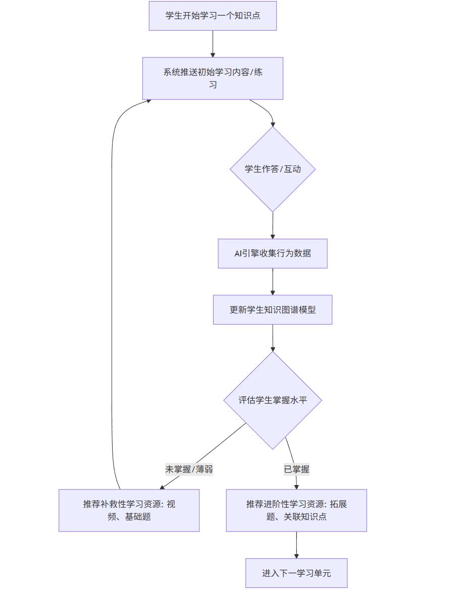 A[学生开始学习一个知识点] --> B[系统推送初始学习内容/练习];