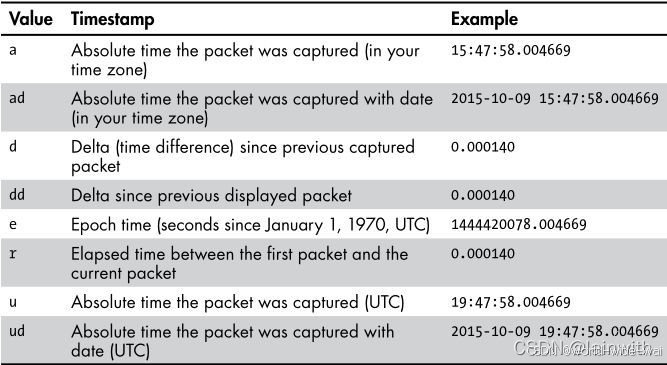 在wireshark-->帮助-->说明文档-->tshark文档file:///Applications/Wireshark.app/Contents/Resources/share/wireshark/tshark.html