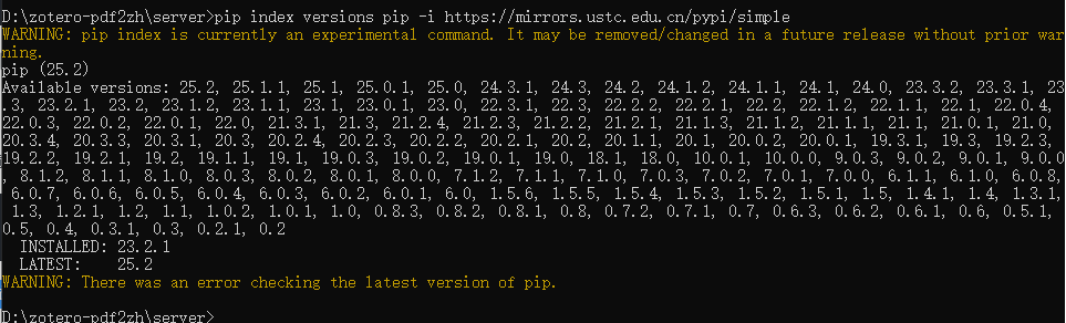 pip index versions pip -i https://mirrors.ustc.edu.cn/pypi/simple