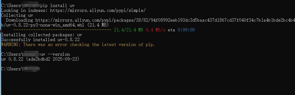 1)确认命令行能访问 Python/uv/conda 之一(python -V