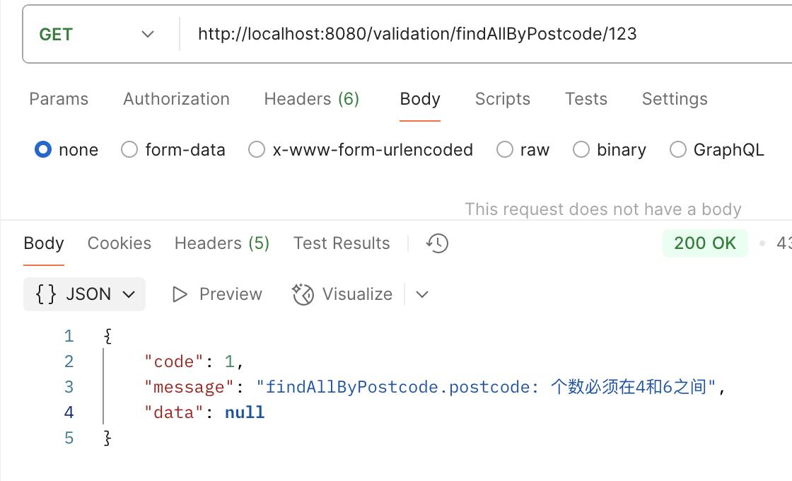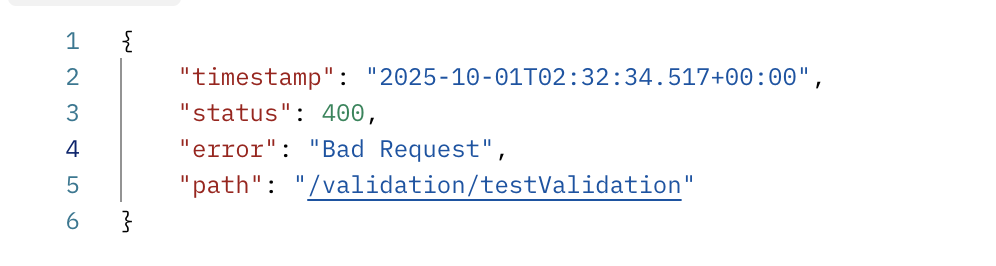 public class UserController {@PostMappingpublic UserVO create(@Valid @RequestBody UserCreateDTO dto) {// dto 已按注解校验,失败会抛 MethodArgumentNotValidExceptionreturn userService.create(dto);}@GetMapping("/{id}")public UserVO getById(@Positive @PathVariable Long id) {// 对路径变量做约束(需类上有 @Validated)return userService.getById(id);}