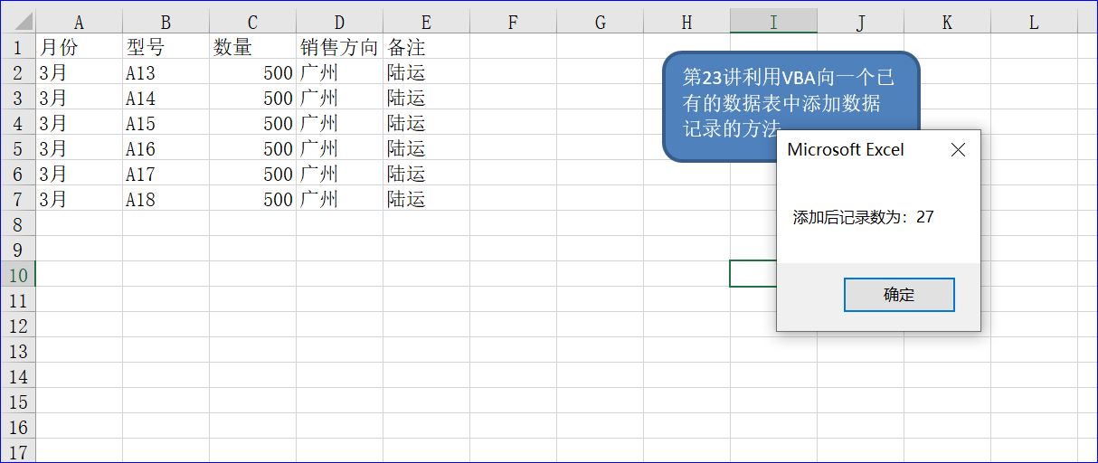 大家好,今日我们继续讲解VBA数据库解决方案的第23讲:利用VBA如何向一个已有的数据表中添加记录。在上一讲中我们讲了如何把工作表的数据保存到新建的数据表中方案,这是非常好的方法,希望读者能在实际的工作中多加利用。和《VBA代码解决方案》一样,读者可以在我的资料中感觉到很多我们实际工作中问题的影子,我曾经不止一次的讲过,VBA的实用性非常高,好好利用,可以大大提高我们的工作效率。今天我们要讲的是:对于一个已经存在的数据表,我们要向其中添加记录的方案。