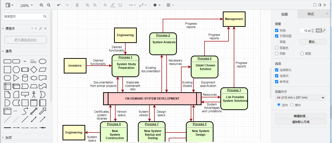 本节详细介绍Drawio在不同阶段的应用,按照软件开发的生命周期进行管理,分别从需求分析阶段、系统设计阶段、系统开发阶段来进行说明。