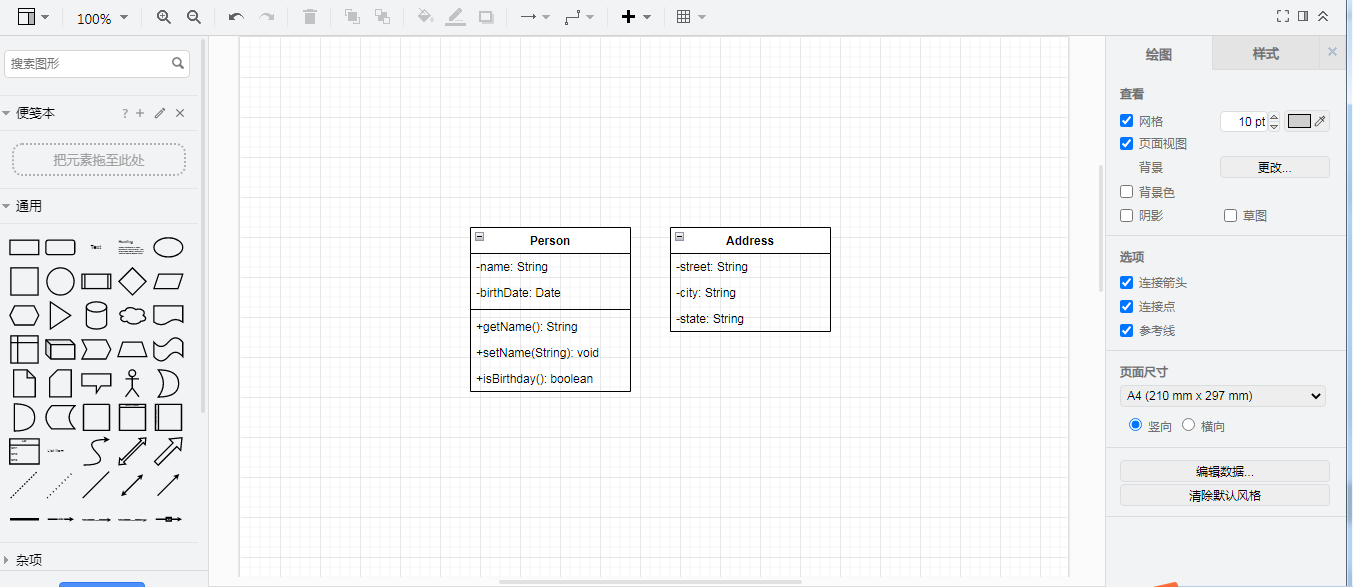 上面的代码表示有两个类,Person和Address类,按照面向对象的设置,这两个类分别有一些属性和方法,点击完成后,可以在页面中看到以下效果。