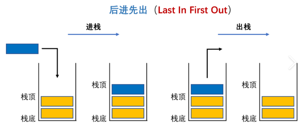 对栈来说,禁止对顺序表/链表的各种增删改查,只支持三个操作:入栈、出栈、取栈顶元素。